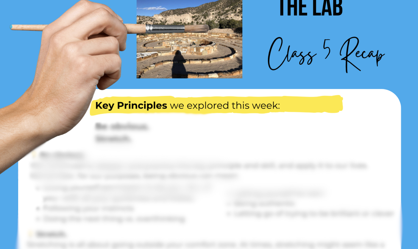 While The Lab is not an art class, most graduates come out of the course with a new, rekindled, or transformed creative practice. You’ll develop skills that artists find life-changing – like anti-preciousness, freedom, returning to beginner’s mind, and anti-perfectionism.